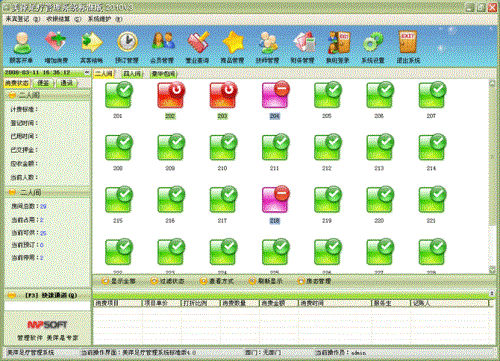 来宾登记→顾客开单:每个客户发生消费前必须进行登记(建立客户帐),给客户安排一个包间(包间)等包间项目,包间项目必须是在“系统设置”模块中的“包间项目”中已经设置,系统只能对已设置的包间项目(包间)进行登记。