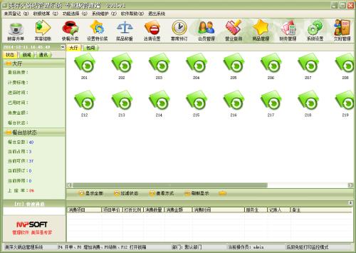来宾登记→顾客开单:每个客户发生消费前必须进行登记(建立客户帐),给客户安排一个包厢(餐台)等包厢项目,包厢项目必须是在“系统设置”模块中的“包厢项目”中已经设置,系统只能对已设置的包厢项目(餐台)进行登记。